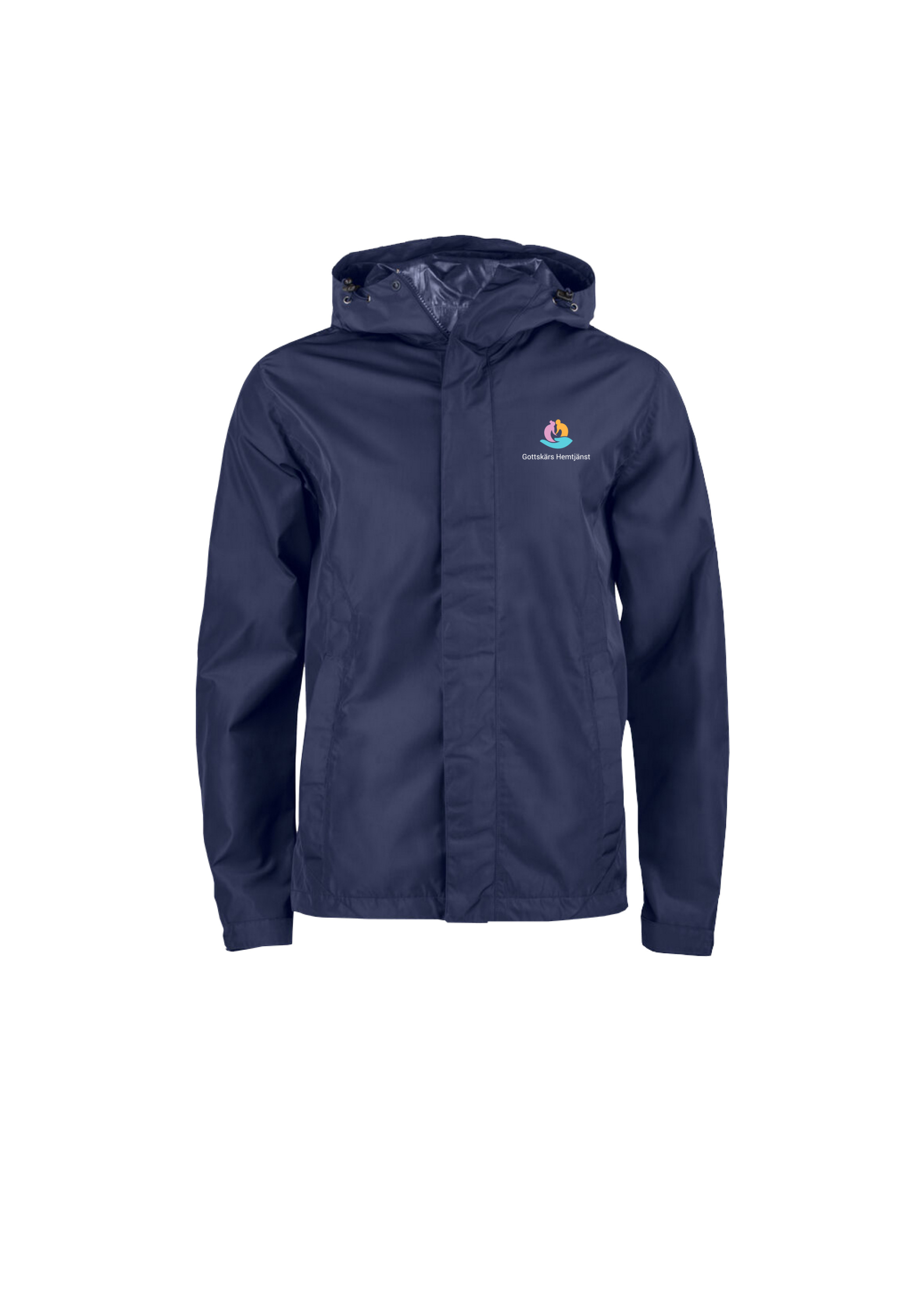 Vattentät jacka i unisexmodell med fast huva. Utrustad med tejpade sömmar,