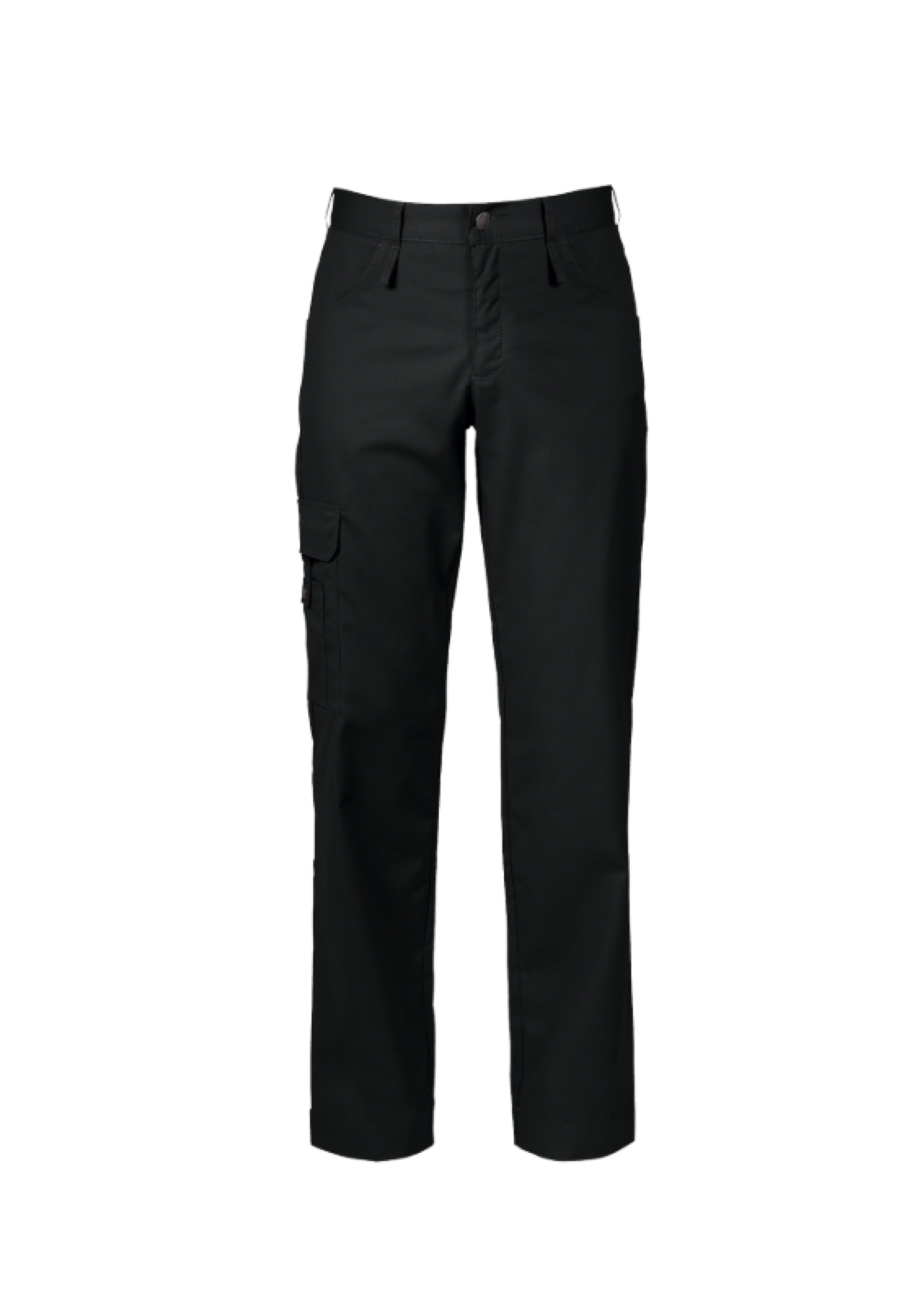 påsydda bakfickor, insydda framfickor och dubbel benficka med knapplock.